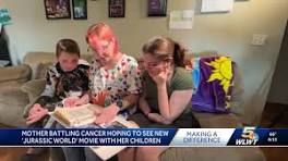 Mother battling cancer hopes to see new Jurassic World movie with her children - YouTube Mother battling cancer hopes to see new Jurassic World movie with her children Subscribe to WLWT on YouTube now for more: http://bit.ly/1ipUX3c ...